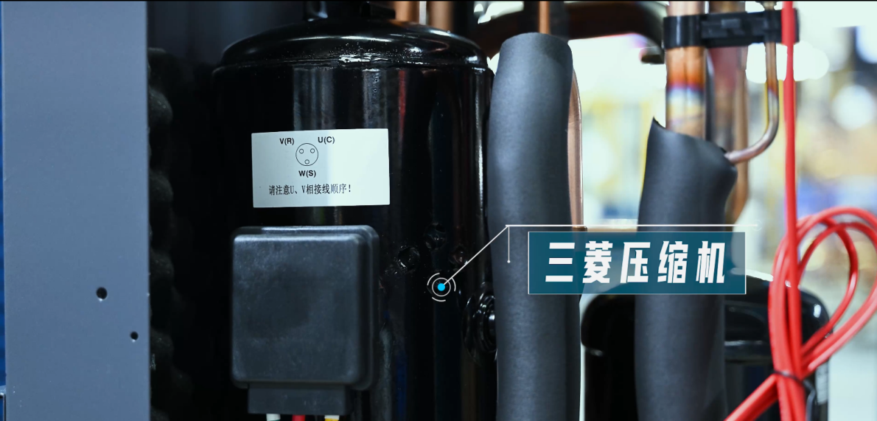 以纽恩泰旗舰产品U+双能TOP冷暖机来看,它搭载国际品牌三菱压缩机(压缩机是冷暖机的“心脏”,负责压缩冷媒实现热量转移,决定设备制冷制热效率),性能强劲。以8匹机为例,压缩机排量达65cc(排量越大,单位时间内压缩的冷媒越多,制冷制热速度越快),远超普通国产压缩机的42cc,单位时间制冷/制热能力更强,尤其在超低温环境下优势明显,额定制热量比普通机型提升4-5kW(kW是功率单位,数值越大,产热能力越强)。